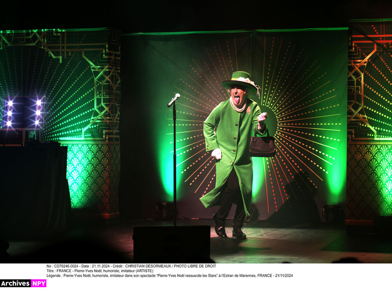 Sur scène, c’est un casting de revenants en pleine forme : Coluche qui clashe les médias, Piaf qui reprend Angèle,